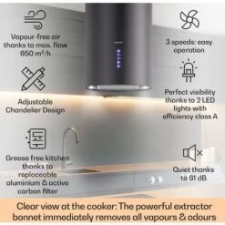 Klarstein Kronleuchter L Island Exhaust Hood 60cm Exhaust Air: 590m³ / H LED Touch Black