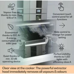 Klarstein Contempo Neo Substructure Cooker Extractor Hood 60cm 175m³ / H LED Stainless Steel Acrylic