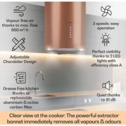 Klarstein Beretta, Island Extractor Hood, Ø 35 Cm, Exhaust / Circulating Air, 650m³ / H, LED, Copper