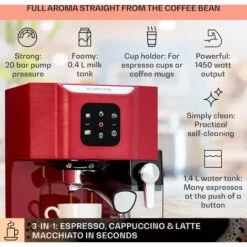 Klarstein BellaVita Coffee Maker 3-in-1 1450 W 20 Bar Milk Frother