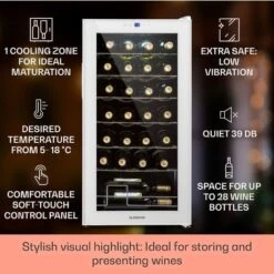 Klarstein Shiraz 28 Uno Wine Fridge 74 Litres 28 Bottles Touch Control Panel 5-18°C