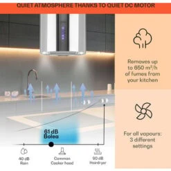 QUICK, STRESS-FREE SET-UP: Step by step assembly instructions ensure a quick installation that’s as easy as following a recipe. This extractor fan for kitchen islands comes with all accessories including a mounting plate for a fast installation.