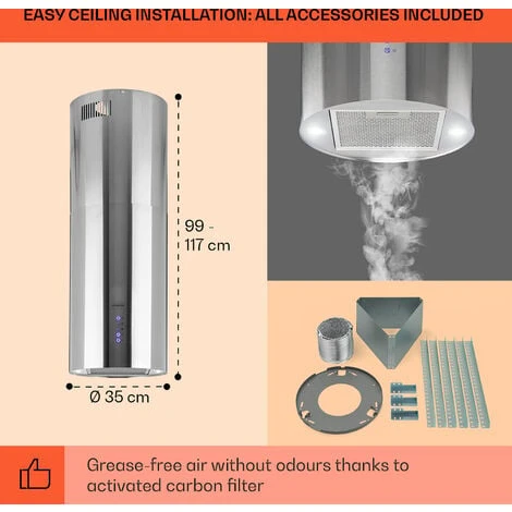 Clear air and elegant shape: the Klarstein Beretta island ceiling cooker extractor hood gives the kitchen brilliant moments.