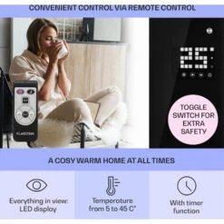 SIMPLE AND EASY TO CONTROL: Control the electric wall heater from the comfort of your sofa via the remote control. With the integral adjustable thermostat and auto-off timer, you can set your ideal temperature without consuming extra energy.