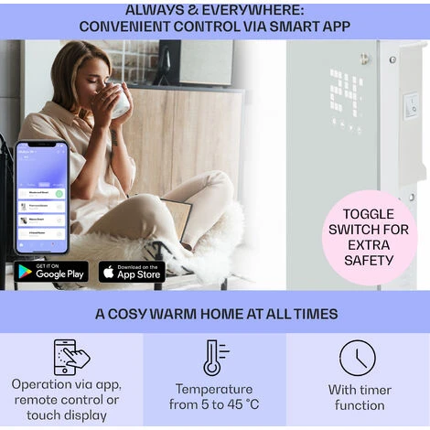SIMPLE AND EASY TO CONTROL: Control the electric wall heater from the comfort of your couch via the smart app. With the integral adjustable thermostat and autoshut off timer, you can set your ideal temperature without extra energy consumption.