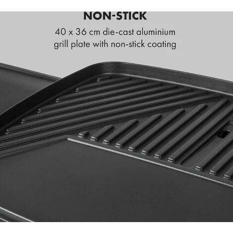 Non-stick: 40 x 36 cm die-cast aluminium grill plate with non-stick coating