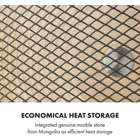 The Klarstein HeatPal Marble Blackline infrared heater is an extremely practical, mobile heat source and a highly efficient heat accumulator long after it has stopped operating. So this innovative heater continues to heat for a long time even without using electricity: perfect for cold winter days! The infrared heat radiation is extremely pleasant and healthy – almost as if warm rays of sunlight were caressing you. Owing to IR Comfort Heat-technology, the air is not heated, but people and objects are immediately warmed up. Equipped with extra wide feet and carrying handle, it is super mobile and ready for spontaneous use in any room.