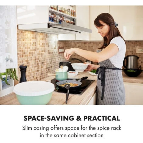 Versatile, powerful and incredibly compact: the Klarstein Mariana 90 flat screen hood with a smart pull-out mechanism ensures a haze-free kitchen at all times.