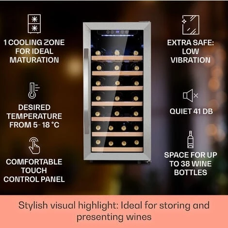 DISPLAY YOUR EXQUISITE BOTTLE COLLECTION: House 38 bottles of your best and finest wines in this wine cooler fridge and share them with guests. Temperature controlled wine fridges help preserve flavours and aromas, keeping wines fresher for longer.