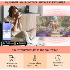 SMART APP CONTROLS WHEREVER YOU ARE: Our app lets you set the desired temperature from your phone wherever you are via WiFI. You can even program one or more infrared heaters to turn on at certain times to return to a warm home or to save energy.